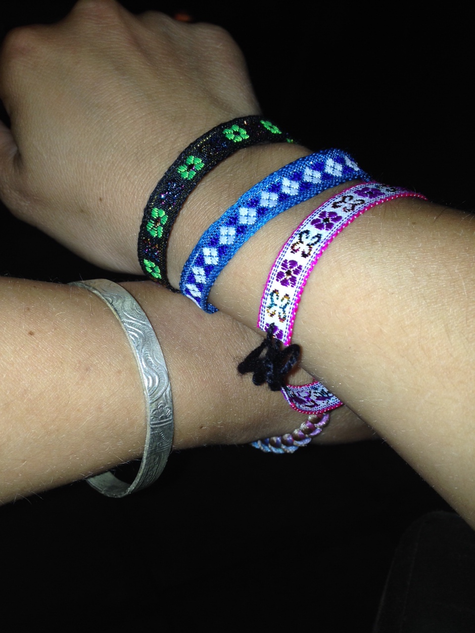 Man stelle sich eine Horde kleiner Hmong (Stamm in Sapa) Frauen in traditioneller Tracht vor – alle wollen sie gleichzeitig ihren Schmuck, gewebte Taschen und Armbändchen an den Tourist bringen. Der „buy-from-me“ Sing-Sang erklingt dann synchron und beschallt das ganze Dorf. Sehr mühsam; auch wenn man die Damen ignoriert, wird man auf Schritt und Tritt verfolgt. Wir haben den Spiess einfach umgekehrt und uns einen Spass draus gemacht, im selben Sing-Sang und unterschiedlichen Tonlagen ein „no-nooo“ zum Besten zu geben. Irgendwie ist das wohl angekommen und jetzt sind wir Freunde und ich um 4 geschenkte Armbänder reicher! 🙂