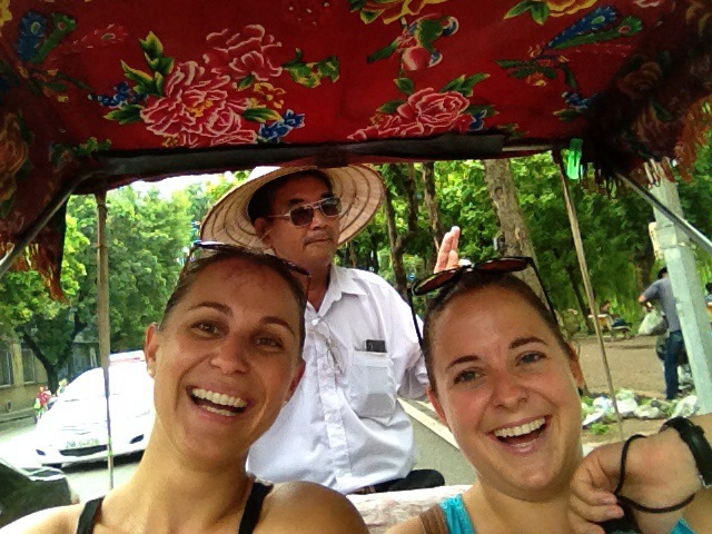 Nachmittags ging es dann auf Rikscha Tour als ich gemerkt habe, dass meine neuen Hosen ein Loch am Füdli hatten. Die deutlich überteuerte Fahrt genossen wir bei einer Affenhitze aufeinander geklebt. Wir merkten zum ersten Mal, dass unsere Körpermasse definitiv nicht asientauglich sind. Die auf der Fahrt entdeckten Läden und Restaurants besuchten wir dann im Anschluss; immer noch mit Loch in der Hose. In einem der Läden nahm ich dann kurzerhand die Nähmaschine in Beschlag. Die Freude der Mitarbeiter hielt sich in Grenzen, als ich mit blankem Popo im Laden stand und meine Hosen flickte. Sie standen mir dennoch mit Schere hilfsbereit zur Seite.