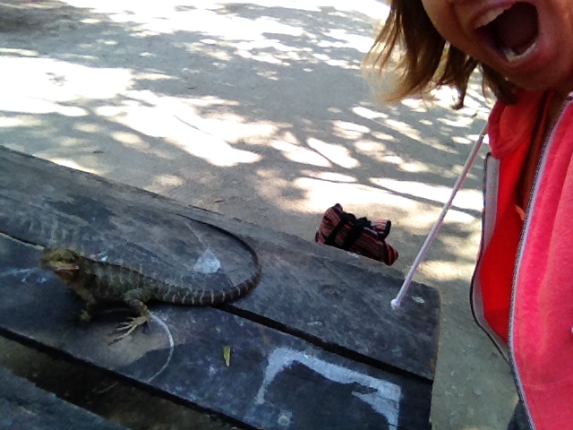Nach einer kalten und nassen Nacht im Zelt sowie schlechten Wetteraussichten, haben wir in Byron Bay ein Hostel gebucht. Byron Bay ist ein Städtchen voller Hippies und schönen Stränden. Mit gekämmten Haaren waren wir allerdings deutlich in der Unterzahl:-) Der Name des Hostels war Programm. Die Arts Factory bot jeden Abend Talent Shows, Konzerte und tagsüber Bastelkurse und vieles mehr an. Unterhaltung garantiert. Weniger unterhaltsam fand ich die Busch-Truthäne und Riesenechsen. Letztere hatten keine Skrupel ohne Vorwarnung auf den Frühstückstisch zu hüpfen. Vergebens versuchte ich auf sie einzureden – ob‘s wohl am Walliser-Deutsch lag? 🙂