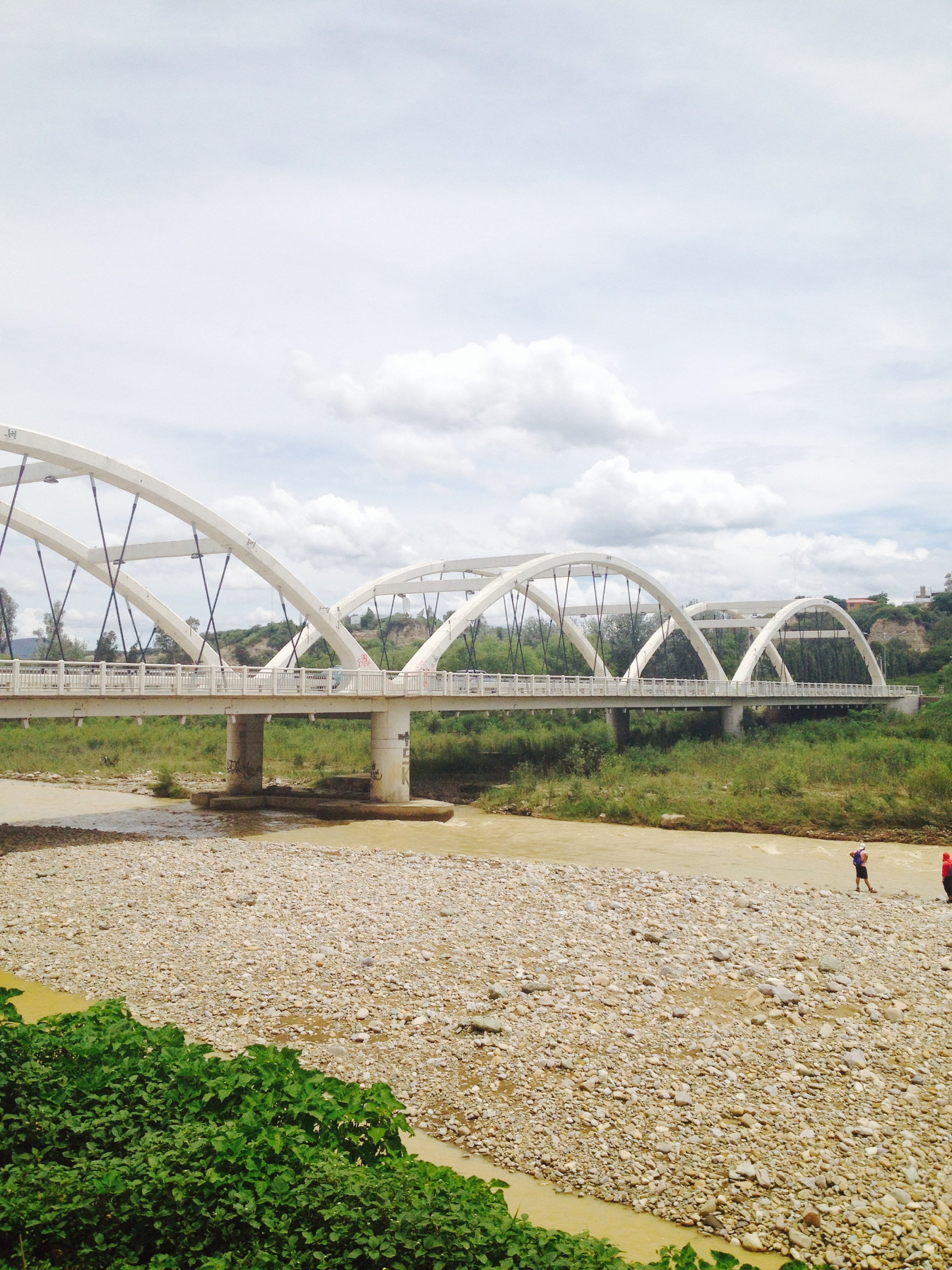 Das Highlight der Fahrt habe ich leider verschlafen: eine riesiege Wasserpfützte wurde während einer halben Stunde mit Plastikflaschen und -eimern ausgeschöpft. Auch war der Bus hin und wieder schier breiter als die Strasse selber. Im Nachhinein war uns auch klar, warum die Busse bei Regenzeit nachts nicht fahren… Es schien sich hier um eine zweite „Todes-Strasse“ zu halten – man stürzt wohl einfach nicht so tief.