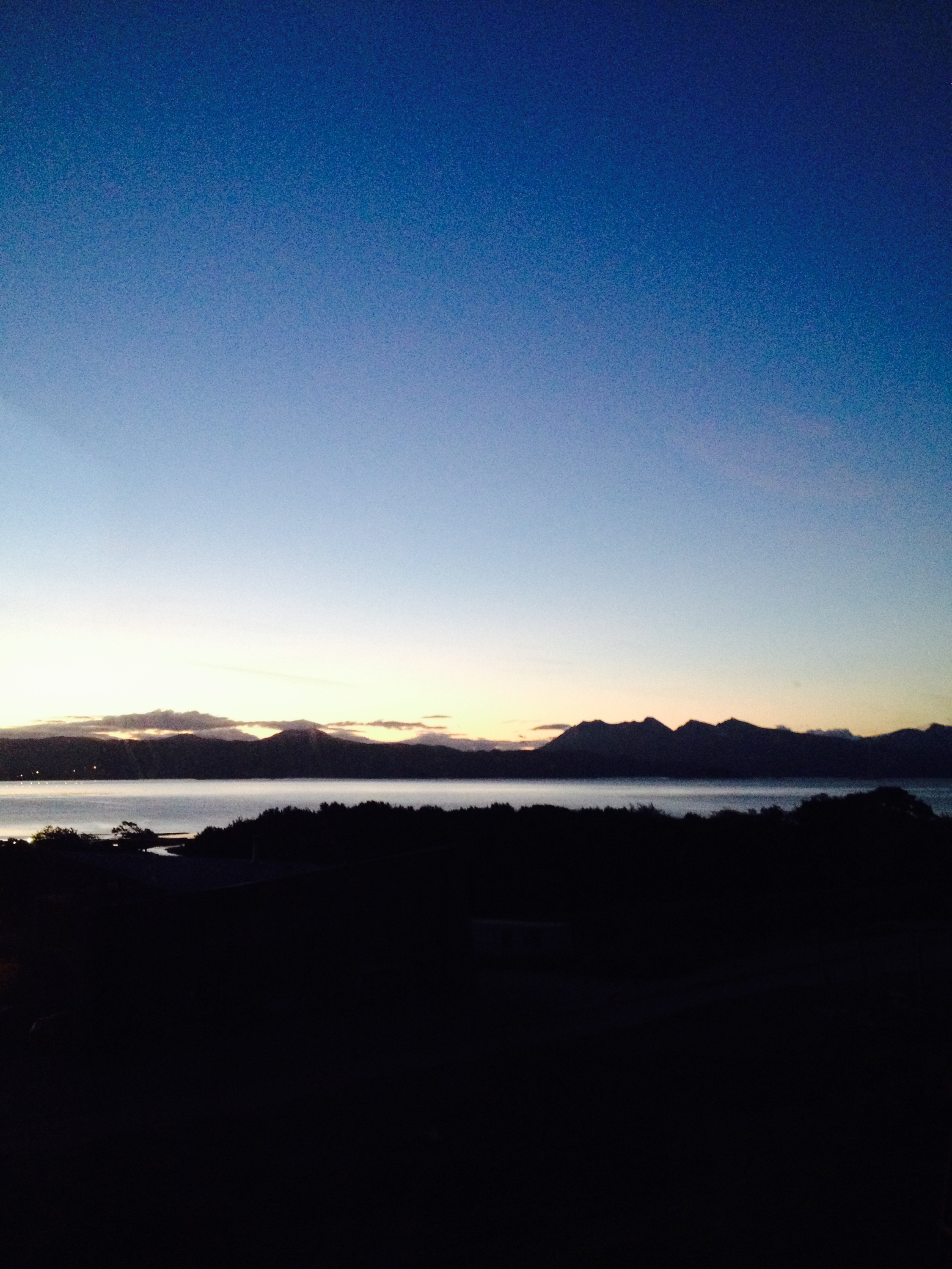 Ushuaia begrüsste mich auch spät abends noch mit blauem Himmel und Sonne. Mein Daunenjäckli musste aber her… Die erste Nacht durfte ich mein Geburi-Geschenk einlösen und im Hotel mit eigenem Whirpool übernachten. Seit Lima hatte ich kein Zimmer, geschweige denn ein Badezimmer für mich alleine. Ein grosses Merci für die kurze Reise in den Luxus namens Privatsphäre.