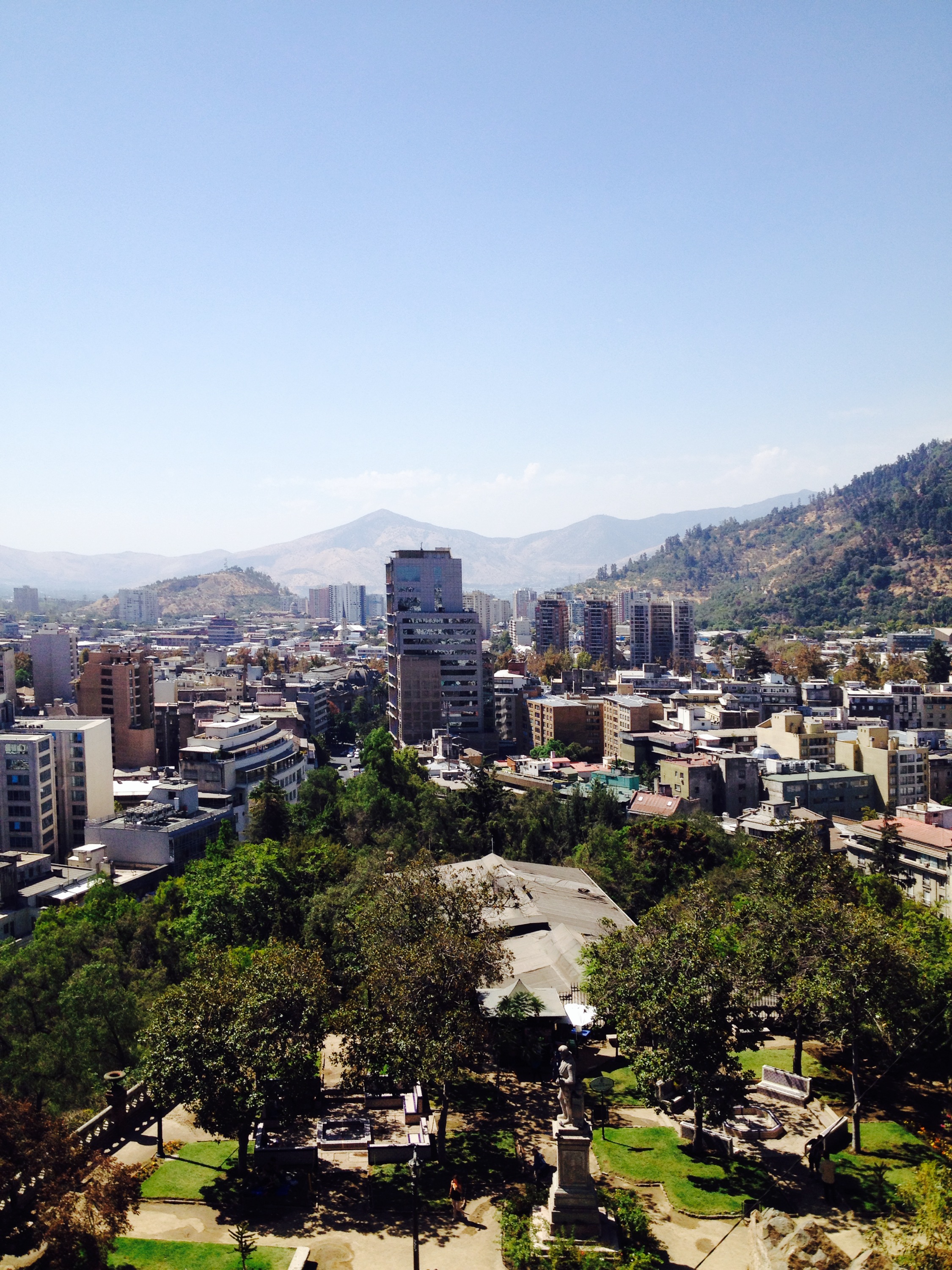 Simon holte mich am Flughafen ab, und mit Bus und Metro ging es ins Zentrum. Aus dem Nickerchen im Park wurde dann leider nichts; bewässern heisst auf chilenisch wohl überschwemmen und so gab es halt einen Stopp im Cafe Mesié Quiltro (sehr cool), bevor es auf den Cerro Santa Lucia ging. Von dort aus, sieht man über die ganze Stadt.