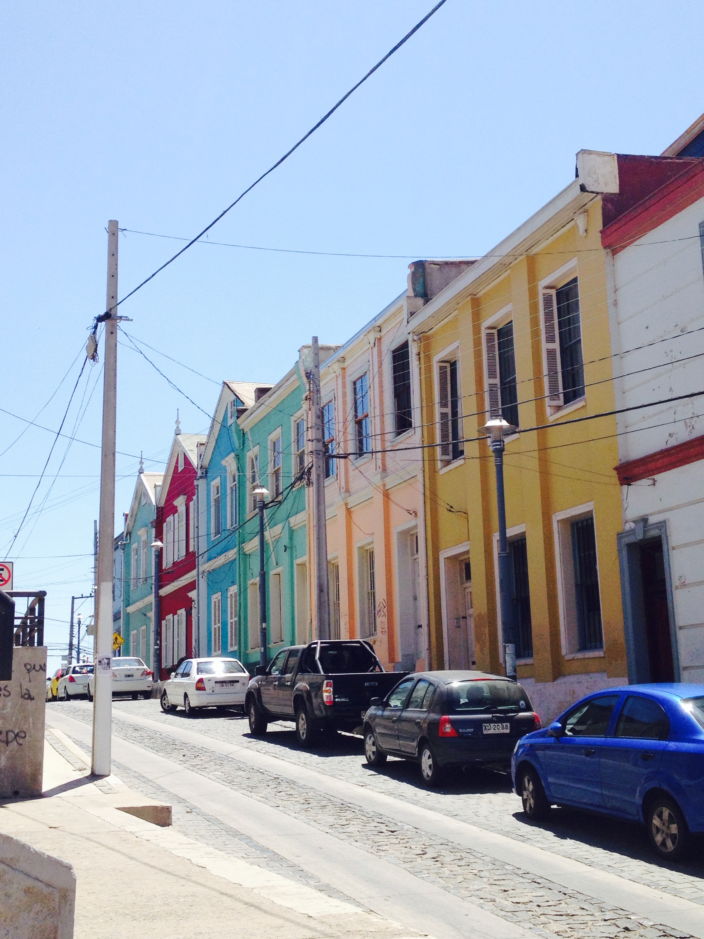 Den Abend liessen wir an der Bellavista Passage, wo unser Hostel lag, gemütlich ausklingen. Da wir mit Sarah weitere 2 Tage in Santiago verbringen werden, ging es am nächsten Tag gleich weiter nach Valparaiso. Busse fahren alle 10-15 Minuten und in knapp zwei Stunden, ist man bereits in der wichtigsten Hafenstadt Chiles. Valpo gilt übrigens auch als kulturellste Stadt des Landes. Der historische Stadtkern gehört seit 2003 auch zum UNESCO Weltkulturerbe. Um uns einen Überblick zu verschaffen, ging es mit „Tour4Tips“ auf eine 3-stündige Spaziertour mit vielen Infos. Die Stadt erstreckt sich vom Hafen bis hoch zu den umliegenden Hügeln, dass man die eine oder andere Treppe zu bewältigen hat. Oft kann man aber auch einfach eine nostalgische Standseilbahn nehmen.