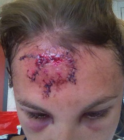 Das 1. Bild zeigt meine Stirn ohne Pflaster zwei Tage nach dem Unfall. Zum Vergrössern einfach anklicken…