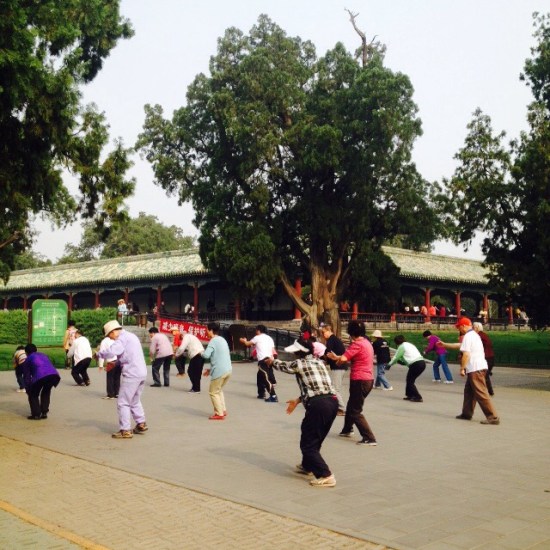 Morgens um 8 war der Himmelspark gefüllt mit Einheimischen, die sich zum Sport und Musizieren trafen. Dass die Chinesen ein sportliches Volk sind, sieht man auch an den Steh-Toiletten, bei denen Kniebeugen je nach Geschlecht und „Geschäft“ nicht unumwindbar sind;)