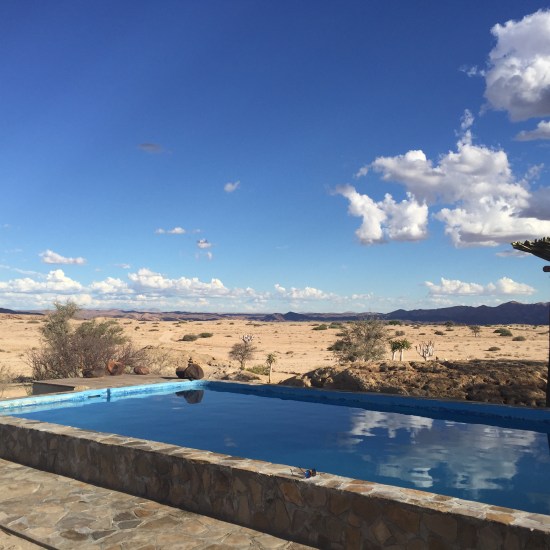 The night was relaxed and we were ready to drive to the next stop „Wüstenquell“. After an adventurous ride on the highway, sliding on the gravel, sand driveways and some wildlife inspections later we finally landed in the middle of nowhere. Meeting little monkeys, ostriches, a springbok, giant bugs, sheep, cows and horses along the way, the welcoming dog at the last gate scared Sandra only a bit – fair enough he jumped on her 🙂 We enjoyed the Wüstenquell Guesthouse at its fullest. I had some days off too and enjoyed my place in the shade while the girls discovered the neighborhood, relaxed at the pool or caught up much needed sleep. Not really hard, looking at the place we stayed at.