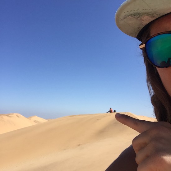 Next stop Walvis Bay! I knew the right way out of Wüstenquell’s private property but the girls knew it even better 🙂 Driving on the landing strip of our neighbor’s airplane was only the beginning of this day’s leg. A short 2 hour drive later they left me under the care of a local dude for only a 10 NAD (less than CHF 1.-) – I think I am worth more! Anyway Kate and Sandra were hungry and not in the mood to negotiate. Sandra was silly enough to tell the car security guys their names so they had time to carve their names into souvenirs. Too friendly and feeling a bit guilty they even bought the key chains (at least for half of the requested price though) after a delicious lunch of fresh fish and Gin & Tonics, followed by some souvenir shopping.