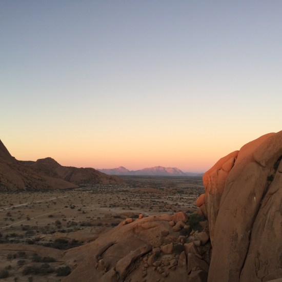 The area of Spitzkoppe was our next stop. After some comfy short rides I was looking forward to this long ride on gravel and sand. Spitzkoppe is also called the Namibian Matterhorn and was straight in front of our camping ground. Both girls enjoyed wandering / hiking around the area. The spontaneous hike up to a lower mountain to see the sunset was responsible for the late set up of the night camp. Please note: it is not recommended to put the tent up in the dark! They did well, hmm only this thing with the ladder was too hard to get – they would blame it on the beers I guess… All good and ready for a late dinner. Please note: it is also not recommended to use the gas cooker for the first time in the dark! Luckily, they had tongs to switch the gas off as they were not planning to burn their eyebrows off or to start a bush fire. Hallelujah! The night was short and windy. Sandra was too lazy to set the tent up properly so some parts of the tent were blowing in the wind. I suppose that it is best that we leave 🙂